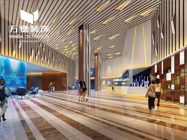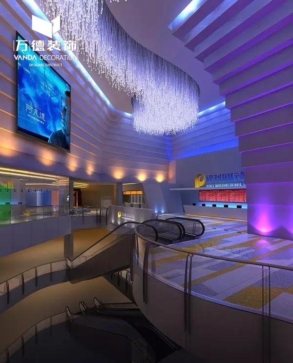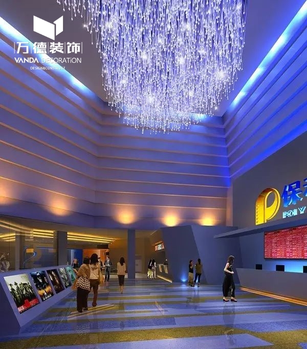明快活泼的浅色弧线以其轻柔、优雅、婉转、流畅的个性,趋向展现出一股旋律式的气韵贯穿其中,在视觉空间中谱出动人的旋律,恰到好处的演绎出电影院所要表达的柔美内涵,产生一种愉悦感。