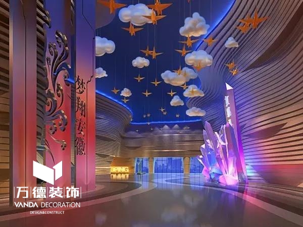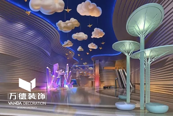 电影乐园中充满了梦幻的气息,实在让人眼前一亮,在现代感十足的空间轮廓加入了漂浮的云朵,飞翔的千纸鹤,奇趣的蘑菇树,一切装饰艺术品都化身成为神话中的魔幻形象,源源不断的灵感的元素,增加了影院乐园的故事性和趣味性,徜徉在魔幻世界中游走是每个有梦之人的梦想。