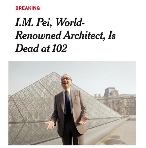 美国当地时间5月16日,享誉世界的华裔建筑大师贝聿铭去世,享年102岁。